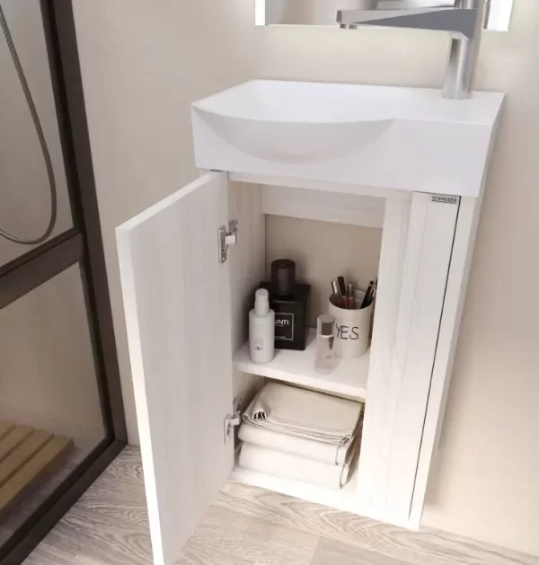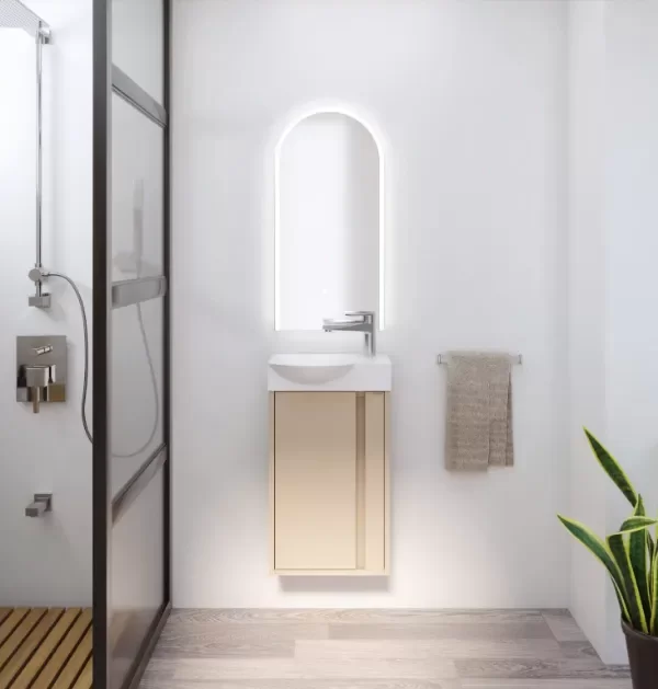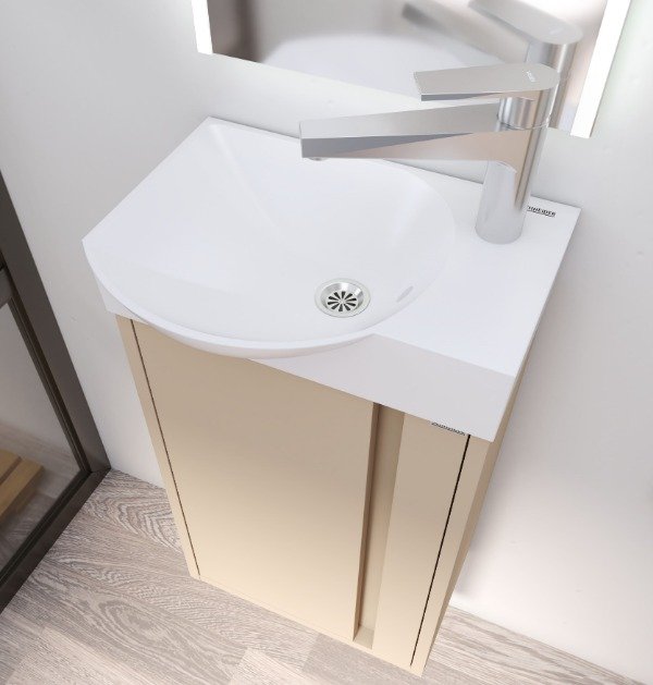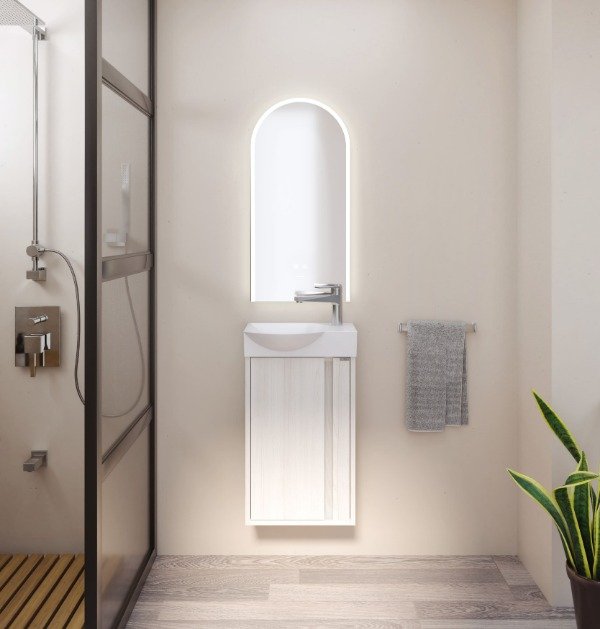 Diseño puro y compacto, pensado para optimizar espacios reducidos sin resignar estilo. Su detalle lateral lo hace único dentro de la línea clásica y cálida. Disponible en dos colores: Sira y Boreal.